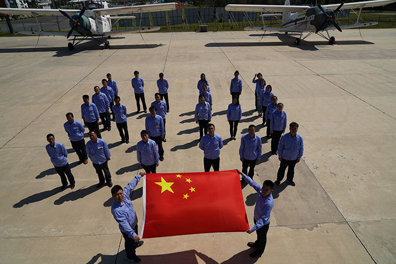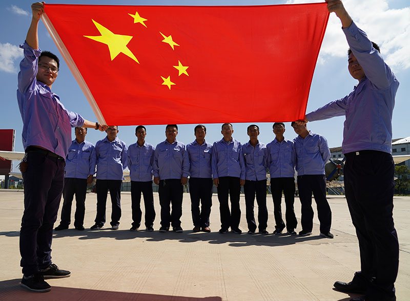 為迎接祖國(guó)69周年華誕,展現(xiàn)公司廣大干部職工愛(ài)國(guó)敬業(yè)精神,荊門(mén)通用航空有限責(zé)任公司(以下簡(jiǎn)稱“荊門(mén)通航”)積極響應(yīng)愛(ài)飛客控股的號(hào)召,周密策劃“我和國(guó)旗合影”主題攝影慶?;顒?dòng),廣泛征求公司眾多攝影發(fā)燒友的意見(jiàn)和建議,結(jié)合公司獨(dú)特企業(yè)文化及航空元素,設(shè)計(jì)出了荊門(mén)通航獨(dú)一無(wú)二的“十一”、“69”等攝影pose,于2018年9月28日上午組織全體在家員工,開(kāi)展了此次主題攝影慶祝活動(dòng),一定程度上提升了公司的團(tuán)隊(duì)協(xié)作能力和凝聚力,同時(shí)也極大激發(fā)了廣大員工的愛(ài)國(guó)情懷。