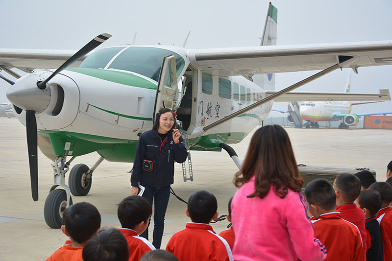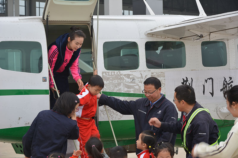 期間,荊門(mén)通航從經(jīng)理部、飛行管理部、機(jī)務(wù)工程部選派了三名工作人員,分別向孩子們講述了飛機(jī)的由來(lái)及發(fā)展過(guò)程;飛機(jī)飛行的原理;飛機(jī)(包括C208和Y5機(jī)型)組成部分、性能和用途;機(jī)組成員的構(gòu)成、分工;成為飛行員、機(jī)務(wù)維修人員應(yīng)具備的條件等航空知識(shí),孩子們聽(tīng)得異常認(rèn)真,學(xué)到了很多平時(shí)的課堂上學(xué)不到的知識(shí)。初步了解了航空知識(shí)后,接下來(lái)便是孩子們期盼已久的體驗(yàn)環(huán)節(jié),荊門(mén)通航工作人員依次帶領(lǐng)孩子們到賽斯納208和運(yùn)五飛機(jī)上體驗(yàn)觀摩,進(jìn)一步加深了他們對(duì)飛機(jī)的理解和認(rèn)識(shí)。此外,“最美通航人”候選人盧慶新同志也親臨科普教育現(xiàn)場(chǎng),為孩子們講述了他從事飛行的故事,將現(xiàn)場(chǎng)氣氛引入高潮,贏得了孩子們的陣陣掌聲。