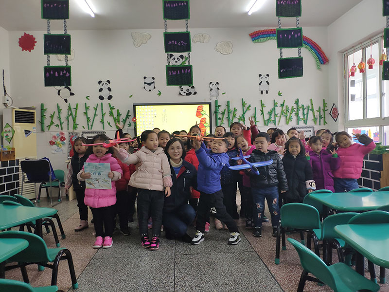 最后科普人員向孩子們分發(fā)手拋飛機(jī)玩具,科普人員與孩子們一起動(dòng)手,拼接好玩具,并講解正確的飛行方法。孩子們開心地拿著飛機(jī)玩具在教室里放飛,看著飛機(jī)可以飛向他們所拋的方向,他們歡呼雀躍。