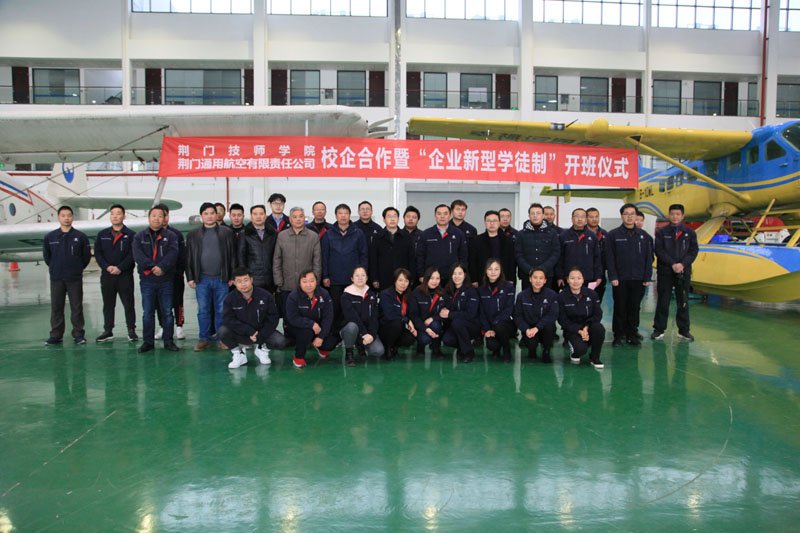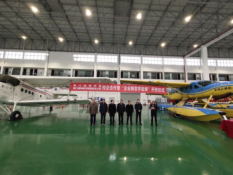 2019年11月27日,荊門通用航空有限責任公司(簡稱“公司”)、荊門技師學院校企合作簽約暨“企業(yè)新型學徒制”開班儀式在公司圓滿舉行。荊門技師學院院長許松、漳河新區(qū)社會事務局副局長易斌等相關領導、人員出席了開班儀式,公司領導及參訓學員共三十余人參加了儀式。