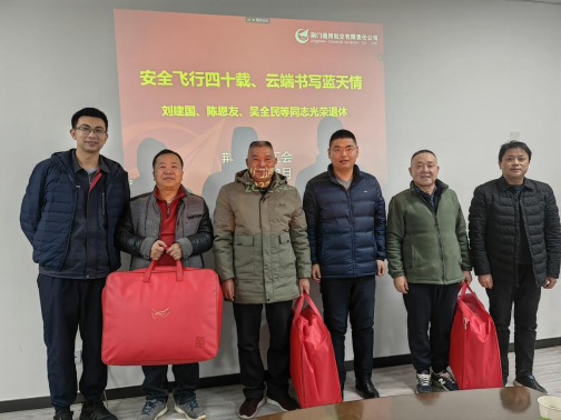 12月30日,荊門通航公司2022年退休職工歡送會在公司會議室舉辦。公司董事長陳閻、總經(jīng)理楊名、工會主席盧慶新及飛行員代表出席歡送會。劉建國、陳恩友、吳全民等三位退休職工參加歡送會。歡送會由工會主席盧···